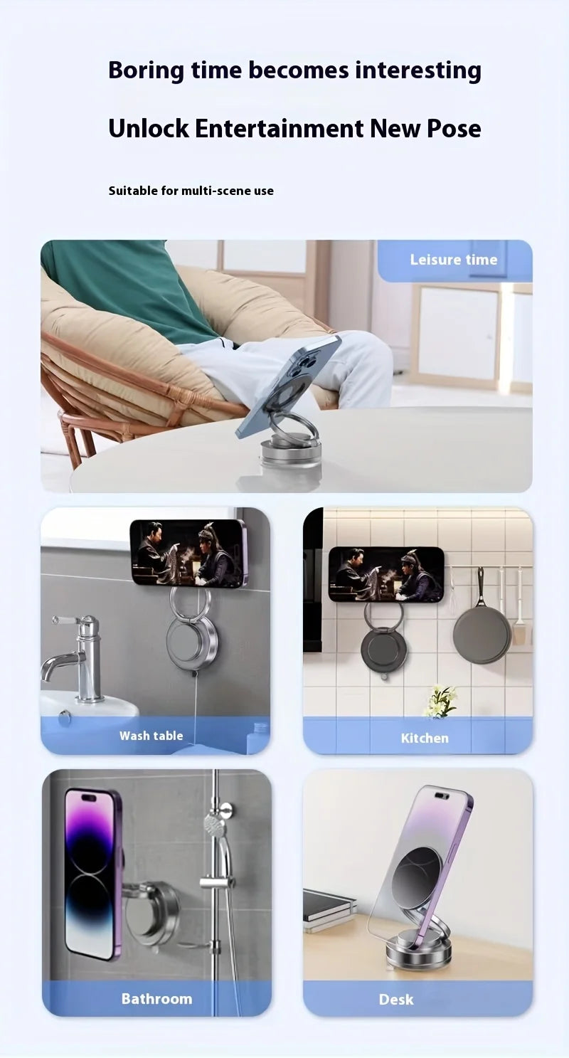 Liberte suas mãos e transforme a forma como usa seu smartphone. Este suporte magnético foi desenvolvido para quem exige qualidade e praticidade. Sua construção ultra-resistente suporta qualquer dispositivo sem comprometer a segurança, enquanto o design dobrável se adapta perfeitamente a qualquer espaço – mesa, carro ou bolsa.